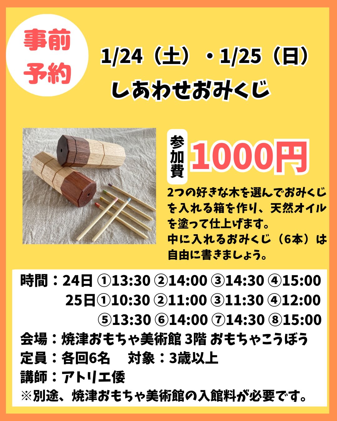 2つの好きな木を選んでおみくじを入れる箱を作り、天然オイルを塗って仕上げる本格的な木工ワークショップ「しあわせ […]