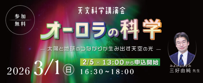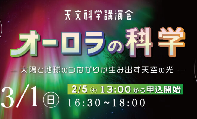 | イベント名 | 天文科学講演会「オーロラの科学~太陽と地球のつながりが生み出す天空の光~」 |