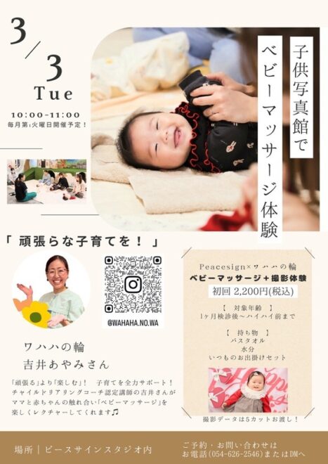 | イベント名 | ベビーマッサージ × ミニ撮影会(データプレゼント) |
