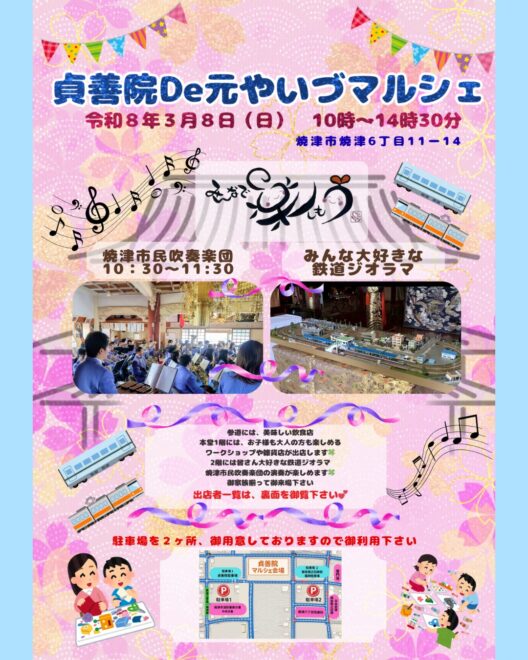 こんにちは!焼津市の貞善院(ていぜんいん)にて、第2回目となる「元やいづマルシェ」が開催されます。