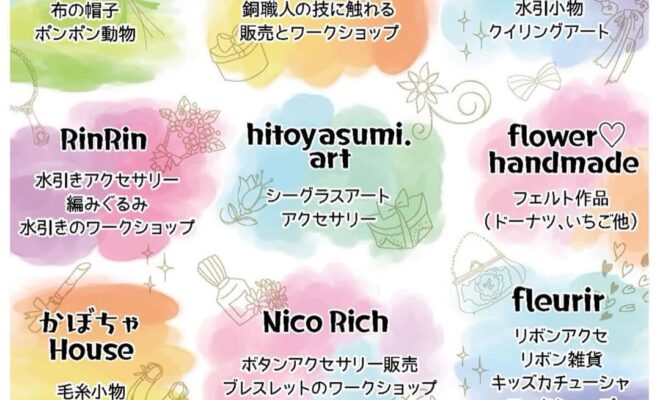 | 内容 | ハンドメイド作品の販売、ワークショップ、フード販売 |