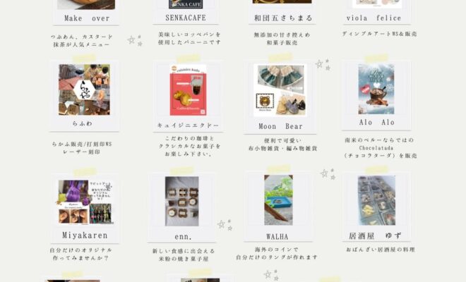 グルメからハンドメイド、リラクゼーションまで幅広いブースが登場します。