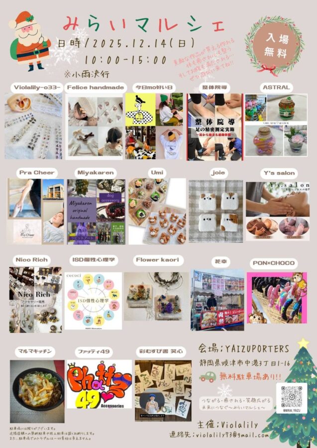 - 詳細:詳細は「みらいマルシェ」のInstagramにてご確認ください。