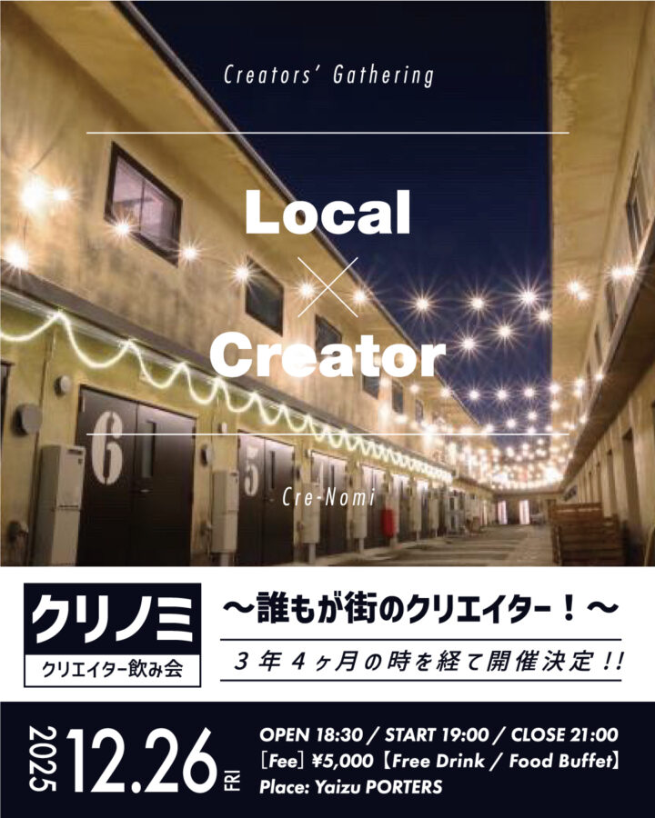 このイベントは「Local×Creators 〜誰もが街のクリエイター〜」をテーマに、自身のスキルや発想を活かして何かを創造する「クリエイター」たちの交流を目的とした大忘年会です。