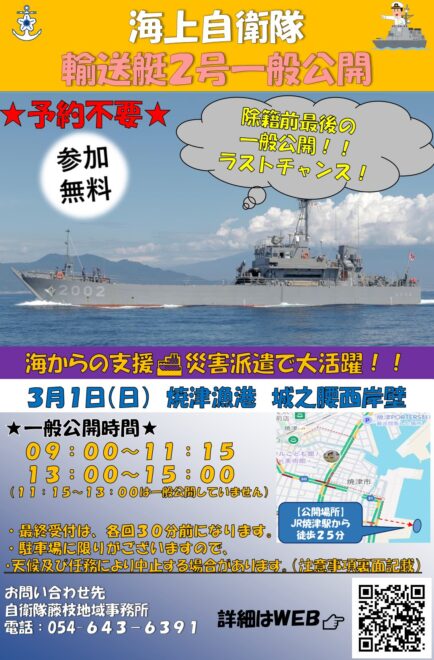 | イベント名 | 海上自衛隊 輸送艇2号 一般公開 in 焼津漁港 |