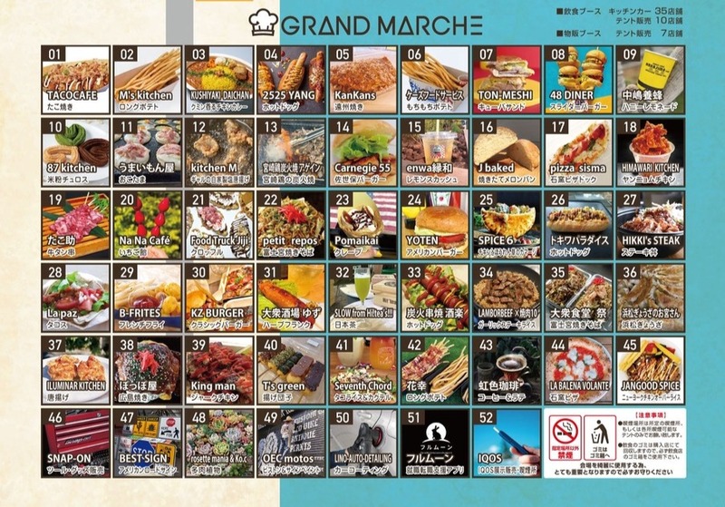 フードブースが35店舗、物販ブースが17店舗の合計52店舗が出店します。