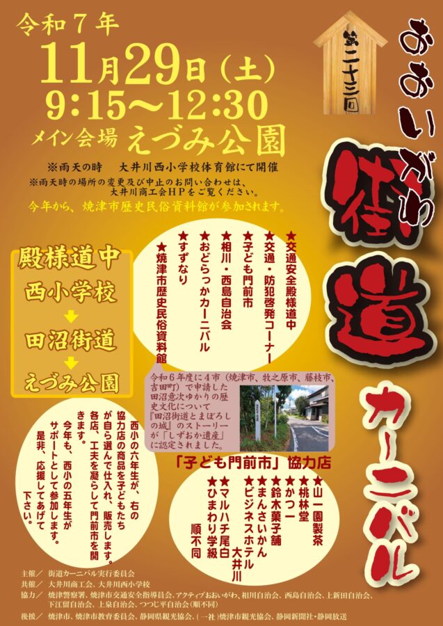 地域が一丸となって賑わいを創出する秋の一大イベント、第23回「おおいがわ 街道カーニバル」が開催されます!
