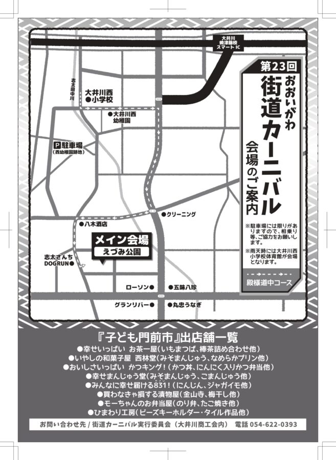- ※雨天時の場所の変更及び中止のお問い合わせは、大井川商工会HPをご確認ください。