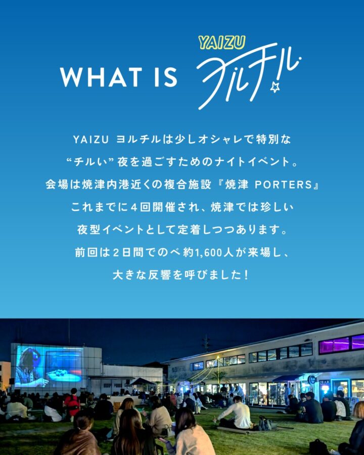 焼津市中港の焼津PORTERSで、5月3日(日)・4日(月・祝)の2日間、「YAIZUヨルチル」が開催されます。
