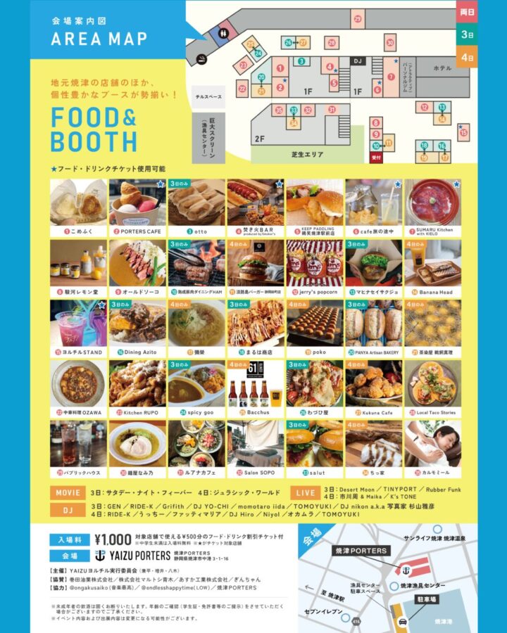 焼津PORTERSの港ロケーションを活かした野外スクリーンイベントとして定着しており、GWの夜を過ごす焼津市民や帰省客に好評です。DJ・ライブ・映画・グルメが一体となった「チル」な雰囲気が人気を集めています。