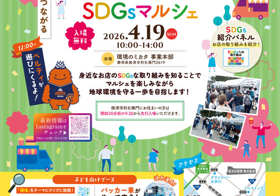 焼津市内の企業「環境のミカタ株式会社」の事業本部を舞台に、SDGsをテーマにしたマルシェが開催されます。
