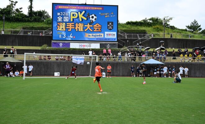 藤枝総合運動公園サッカー場の天然芝で競技できることが人気の全国規模のPK大会です。