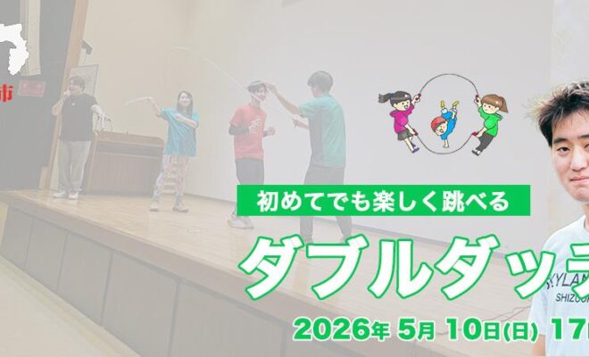 静岡県内でダブルダッチを体験できる貴重な機会です。運動が得意でない方や女性でも講師が優しくサポートするため安心して参加できます。GW明けの連休に体を動かしたい方にもおすすめです。