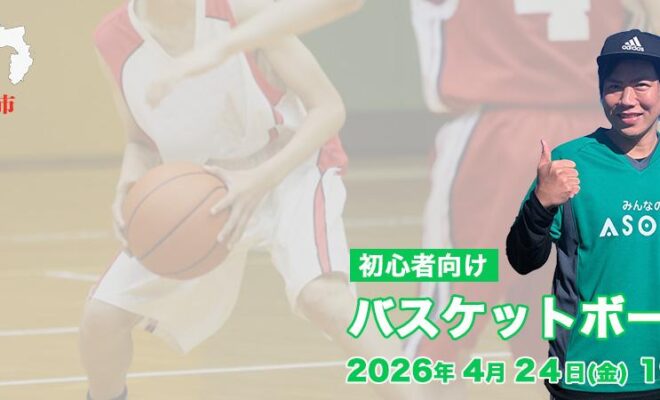 焼津市立豊田中学校で4月24日(金)19時から「初心者向けバスケットボール」体験会が開催されます。中学バスケ部でエースとして活躍した講師ハルさんを迎え、初心者・女性も安心して参加できるよう企画された体験型スポーツイベントです。参加費は当日払い1,000円(中学生以下500円)で、Peatix事前決済または公式LINEからの申込ができます。