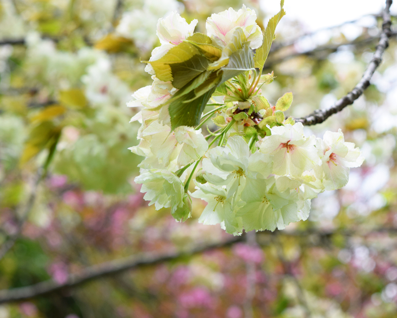 御衣黄はオオシマザクラ系の日本原産の栽培品種で、花びらが緑色をしているのが最大の特徴です。