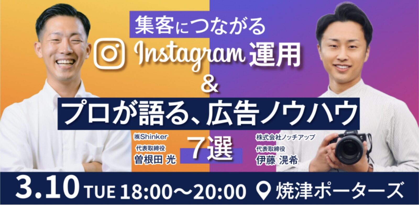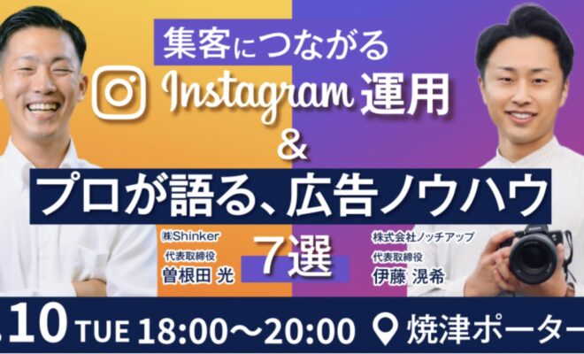 | セミナー名 | 集客につながる、Instagram運用&プロが語る広告ノウハウ7選 |