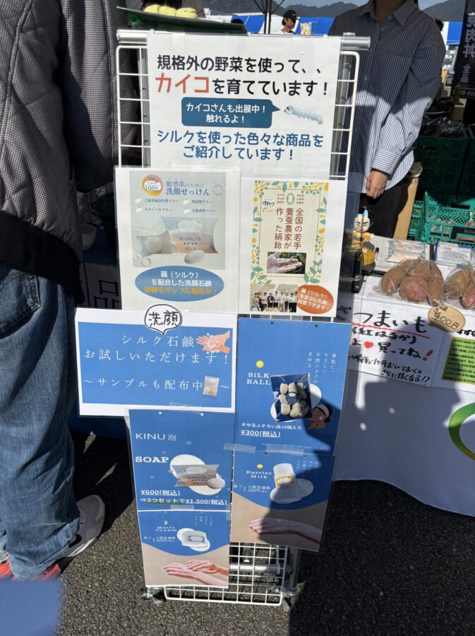 蚕の繭を使った商品を販売しているそうで、サンプルとして蚕の繭がもらえます。
