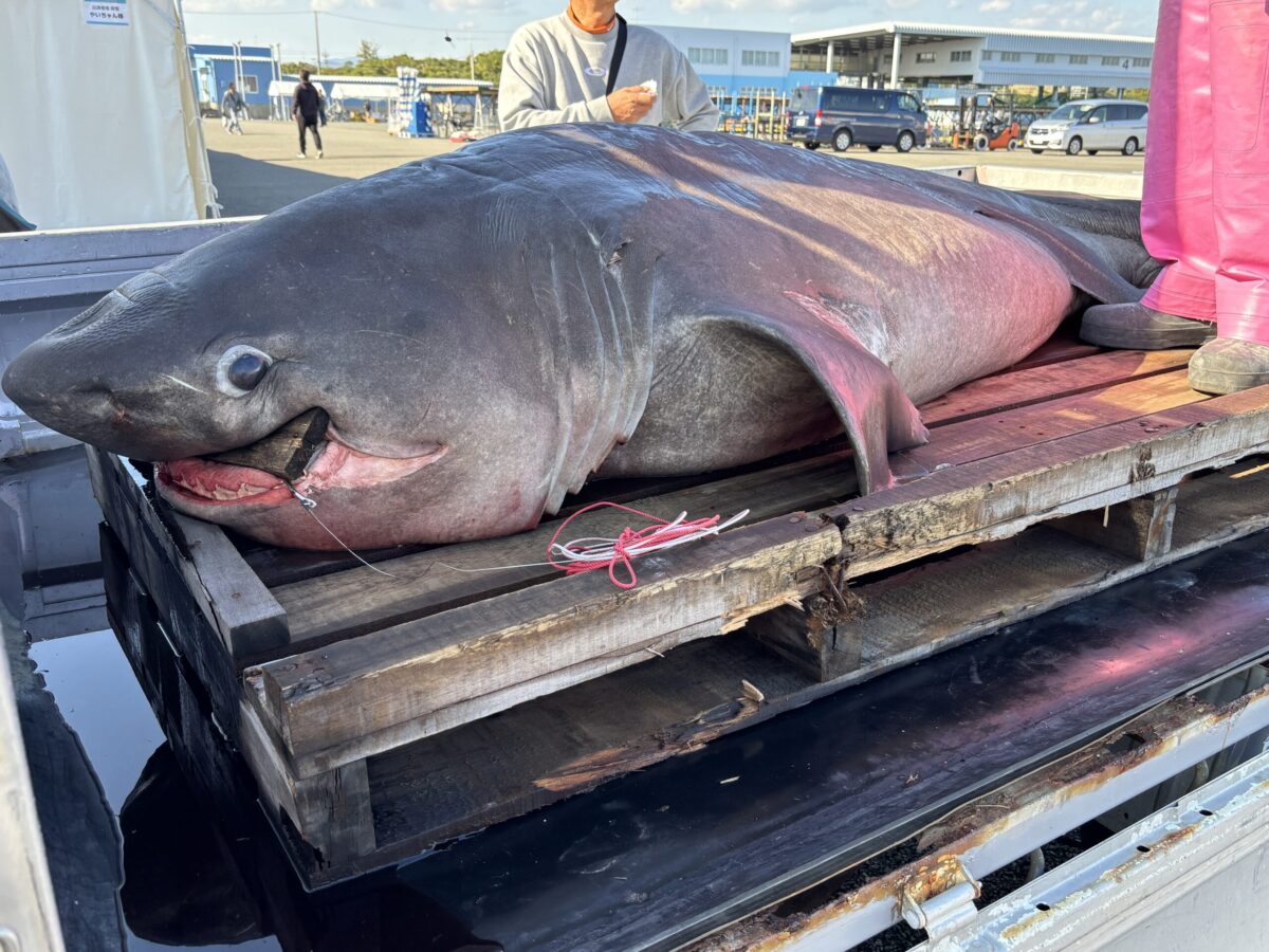 そして、もう一つ軽トラで運ばれてきたのが、生きている化石と言われるカグラザメです!