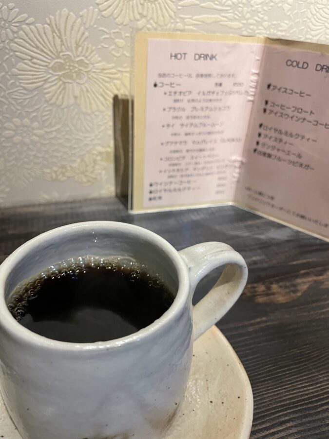 コーヒーは深めの焙煎で、しっかりした苦味がありつつ、後味がまろやかで飲みやすい。