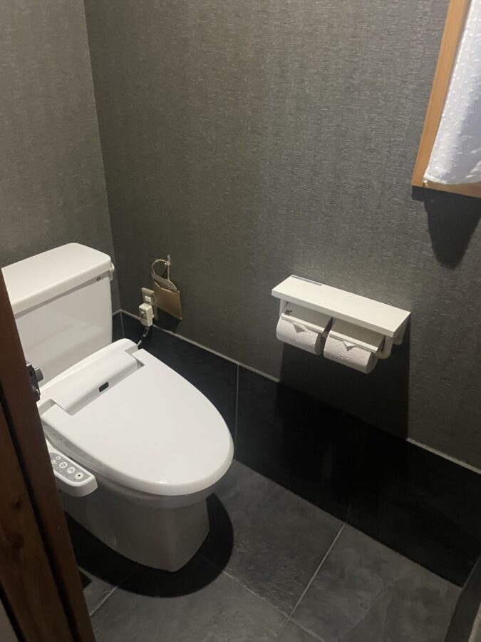 トイレは男女共同。おむつ替えスペースなどはありません。