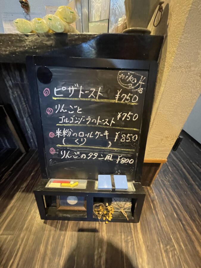 メニューは季節のスイーツやトースト、自家焙煎コーヒーなど。