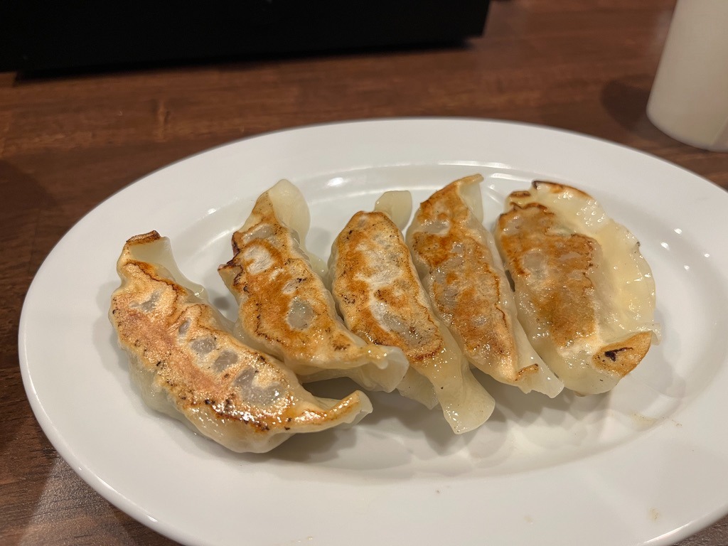 5個(350円)と10個(700円)で注文可能の餃子は、肉汁がたっぷりでラーメンと一緒に味わうには最高の餃子でした。他にもチャーシュー盛り合わせ(400円)や、ご飯系メニューも魅力的です。