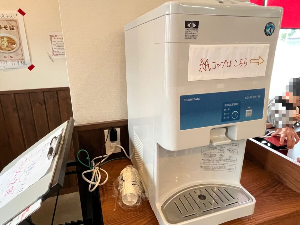 お水はセルフサービス制で、店内に2台ある給水機を利用します。