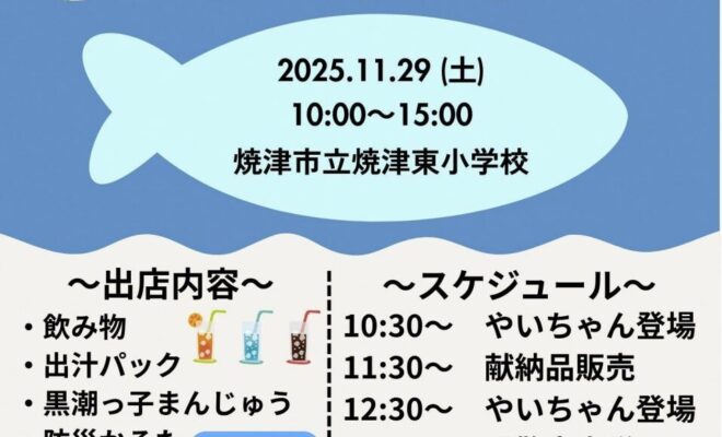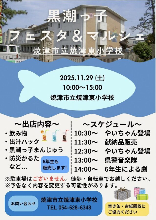 焼津市立焼津東小学校を会場に、地域に開かれた賑やかなイベント「黒潮っ子フェスタ&マルシェ」が開催されます!