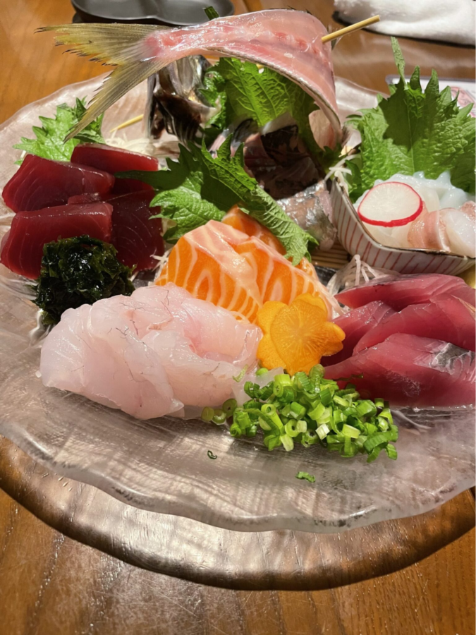 私のおすすめはプリップリの鮮魚盛りと、炭火でじっくりジューシーに焼き上げた串焼き♡