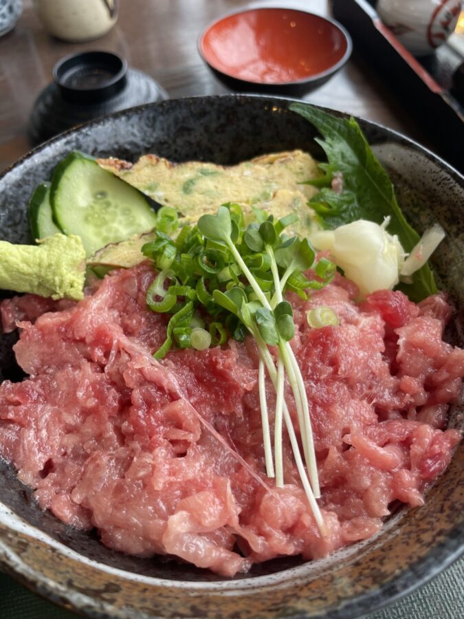 細かく刻まれたトロっとしたマグロがご飯としっかり絡み、口の中で一体になります。