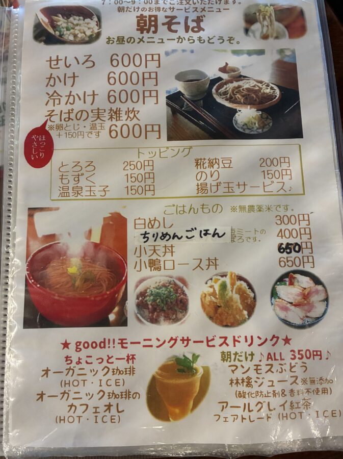 さらに、営業時間にも工夫があります。朝7時から「朝そば」を提供しており、朝食代わりにそばを気軽に楽しむ人にも大人気のお店です。