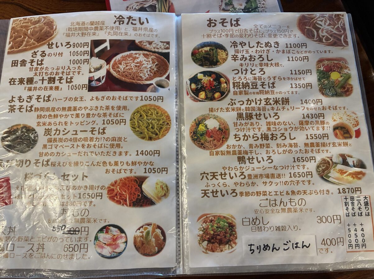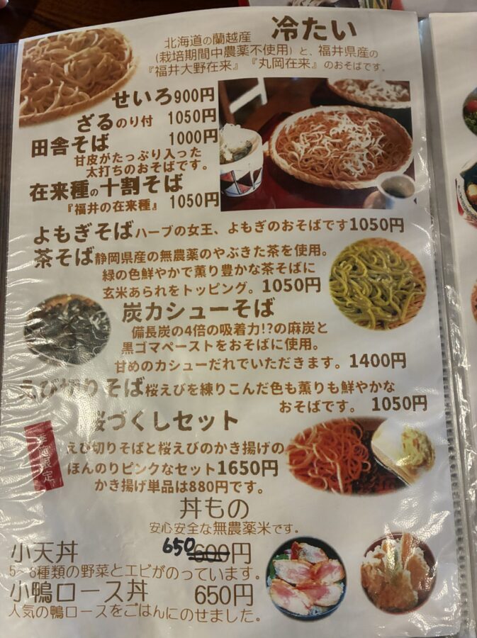 例えば「よもぎ蕎麦」「こうじ納豆そば」「茶そば」など、見た目にも楽しいそばが揃っていて、「いつもとはちょっと違うそばを食べたい」気持ちを満たしてくれるという口コミが目立ちます。