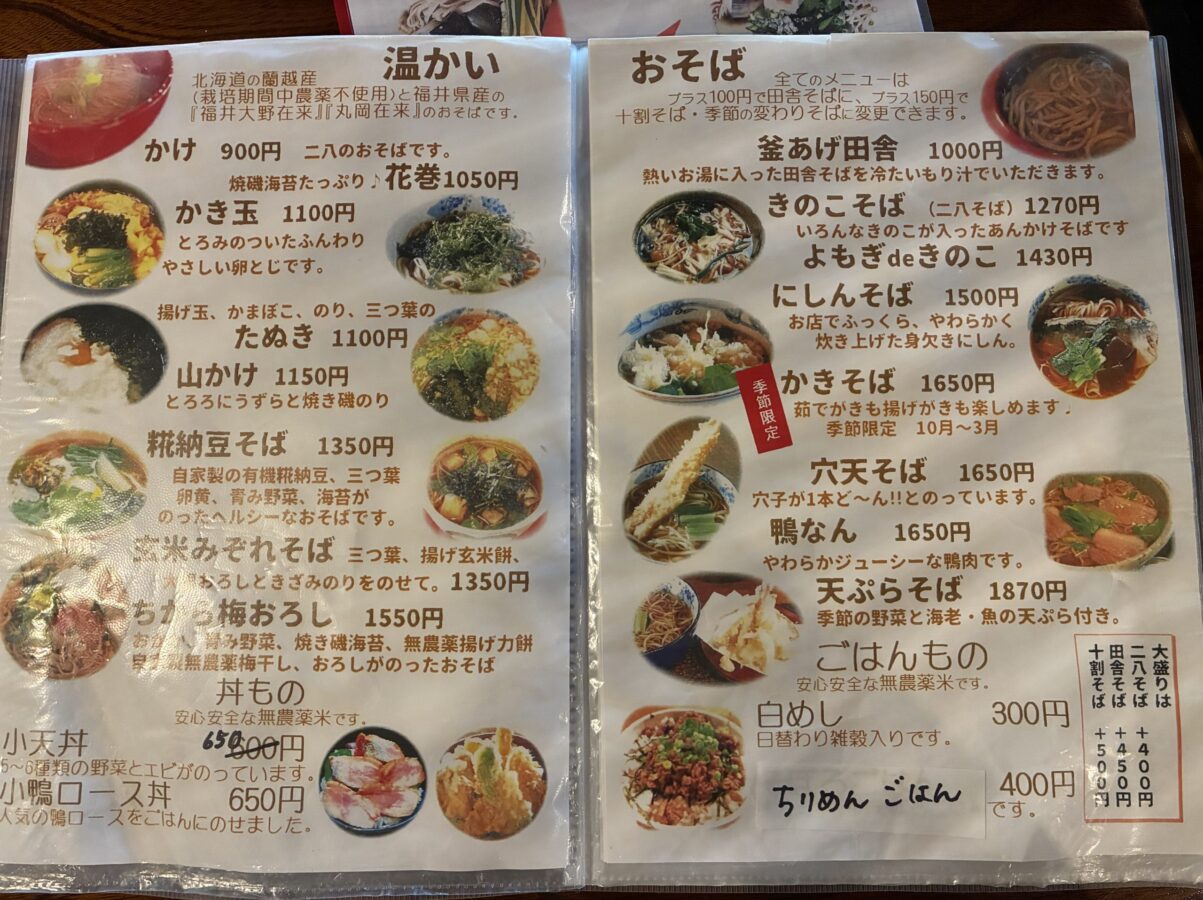 そばと「小天丼」「そぼろごはん」「小牛すじ丼」などの組み合わせが大好評。そばだけでは物足りない人にも嬉しい選択肢があることが、家族連れや多様な客層に支持されています。