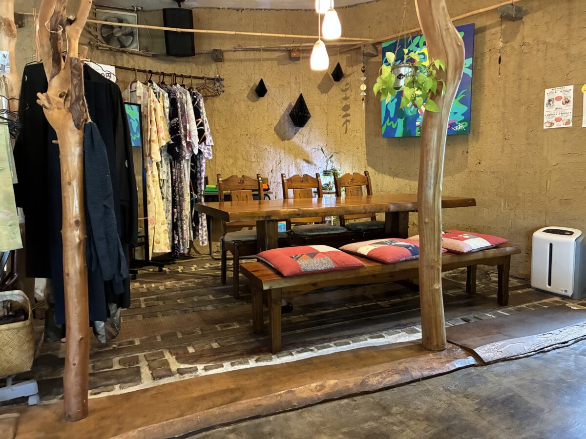店内は土壁、ギャラリー展示、個性的な照明やインテリアが配され、ただ食事をするだけでなく「居心地の良い空間」が広がっており、ゆっくりと時間を過ごせます。