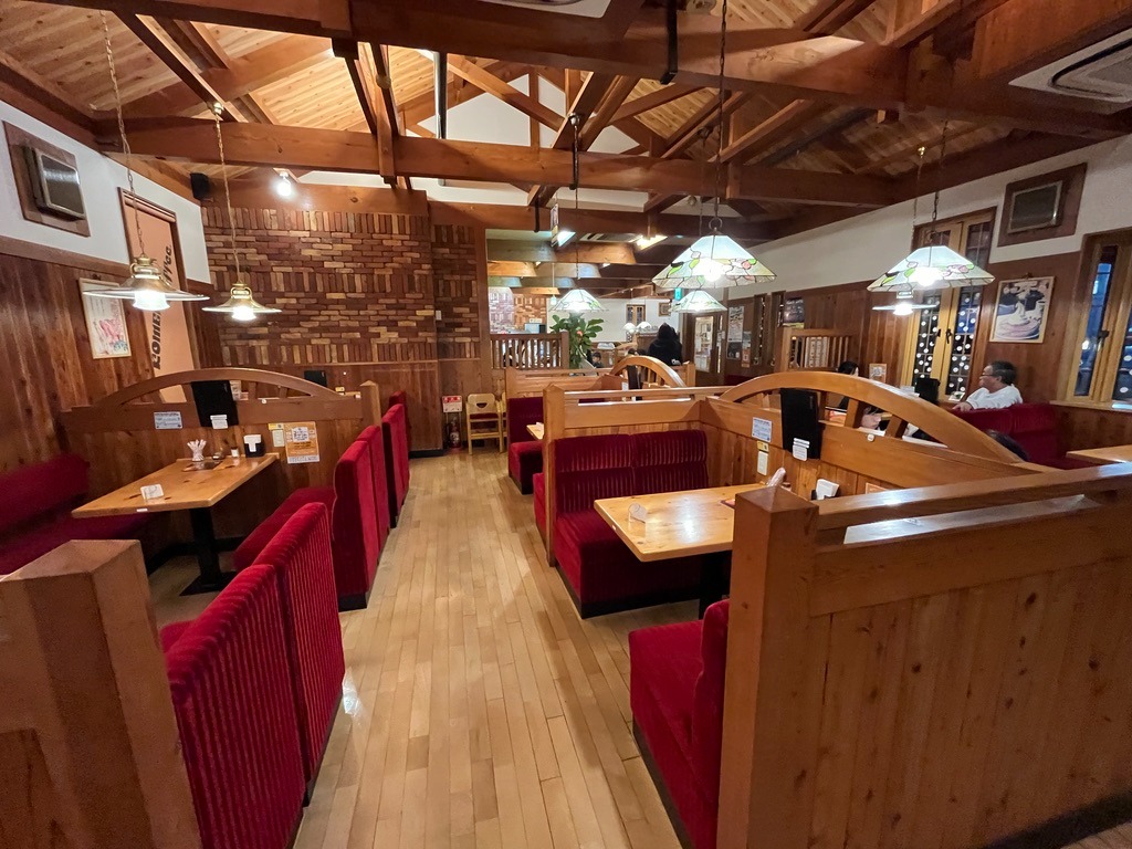 天井は開放感があり、木の梁が見える落ち着いた空間が特徴です。