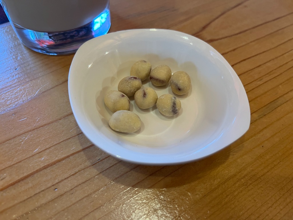 コメダ珈琲では、コーヒーを注文すると豆菓子がサービスで一袋ついてきます。