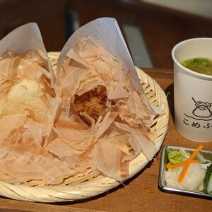 おむすびは「塩焼き」「しょうゆ焼き」「焼かない塩」から選べ、なんとかつお節がかけ放題!