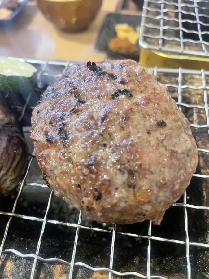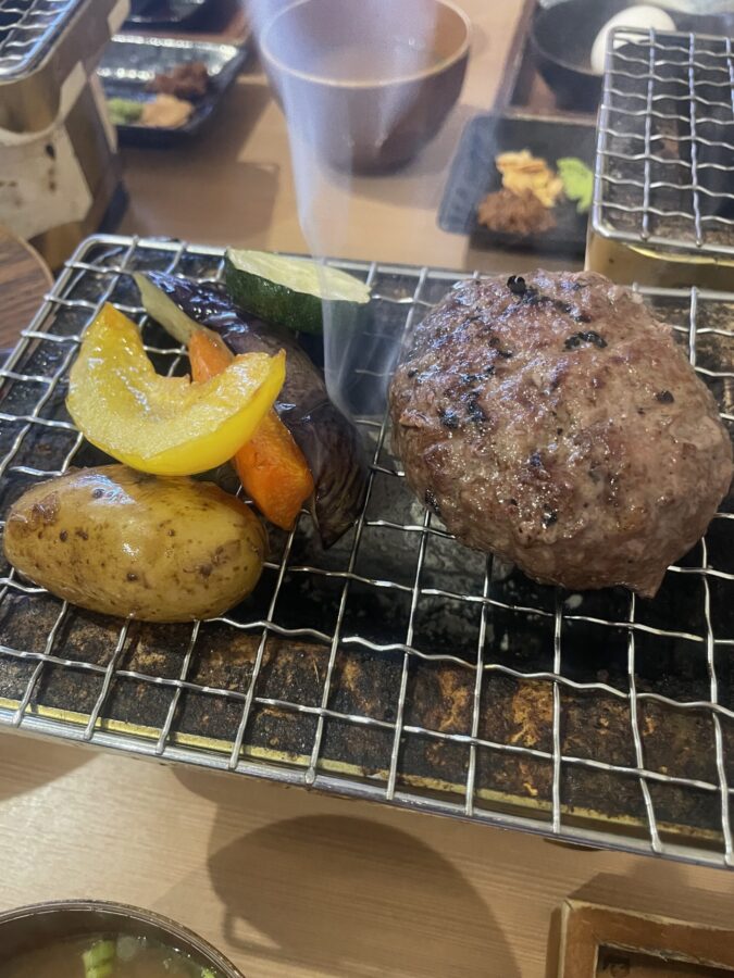 まずは自分専用のミニ七輪で炭焼きハンバーグを堪能♡