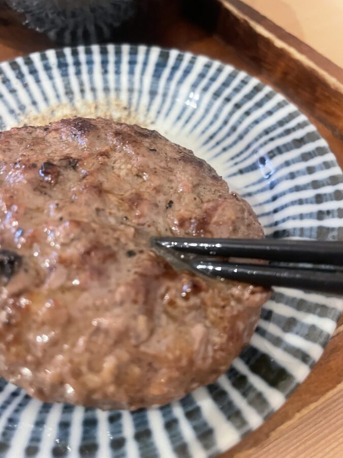 つなぎを使用していない和牛100%のハンバーグは中から肉汁がドバーッ!!と溢れてきました。