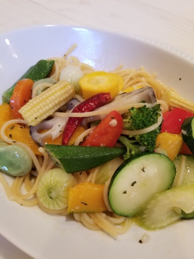 「色んな野菜のペペロンチーノ」や「夏季限定サーモンとフルーツトマトの冷製パスタ」など、メニューも豊富です。