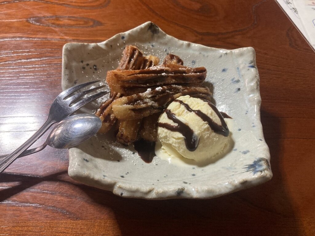 外はカリッと、中はもちもちとした食感のチュロスに、冷たいアイスクリームが溶け合う至福の一皿。