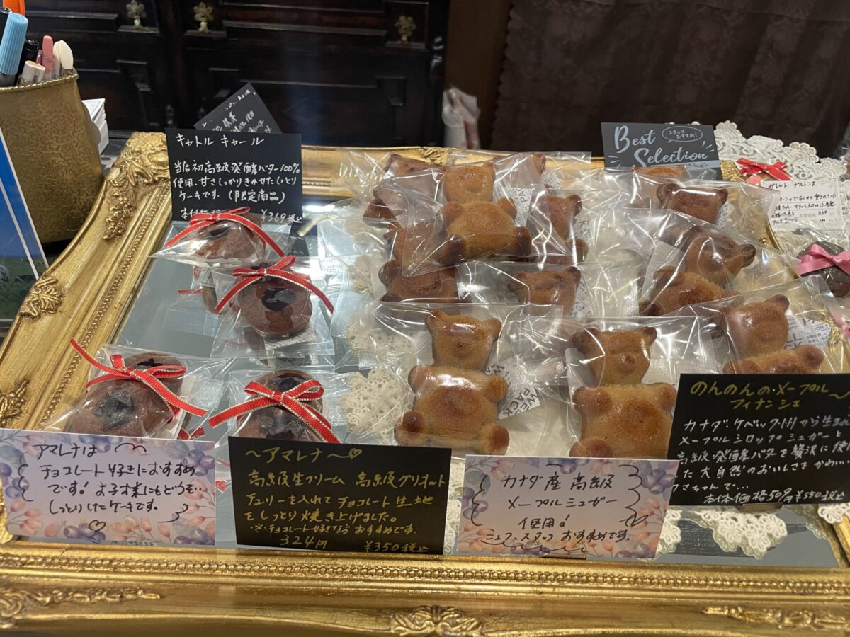 定番のクッキーからくまさんの形をしたフィナンシェ、リボンの形をしているお菓子まで並んでいます。