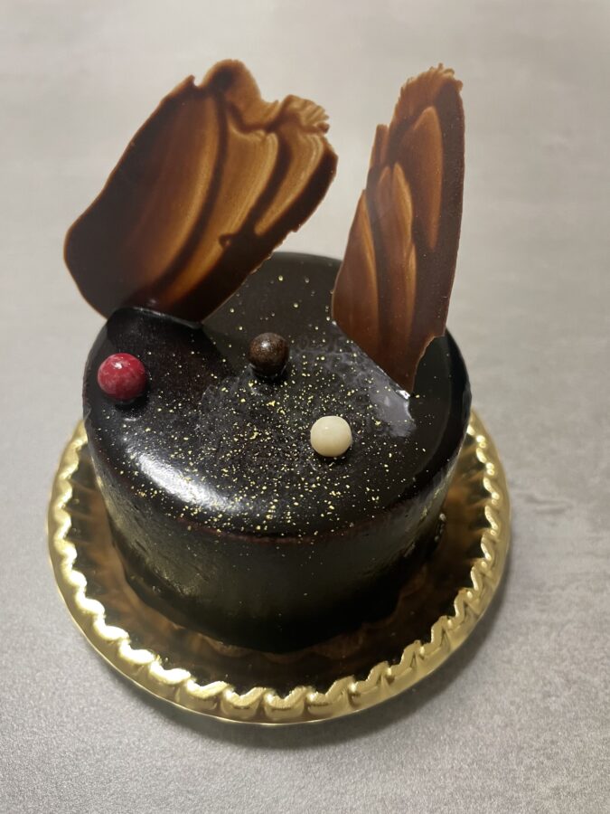 ミルクチョコレートムースの中に焦がしチョコレートを忍ばせているお子様から大人まで大人気の商品!高級感あるビジュアルが目を引きます!