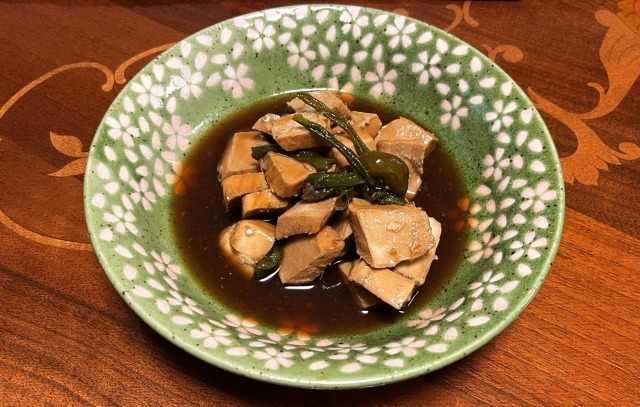 身をサイコロ状にカットして煮込むため「まぐろの角煮」「カツオの角煮」と呼ばれています。